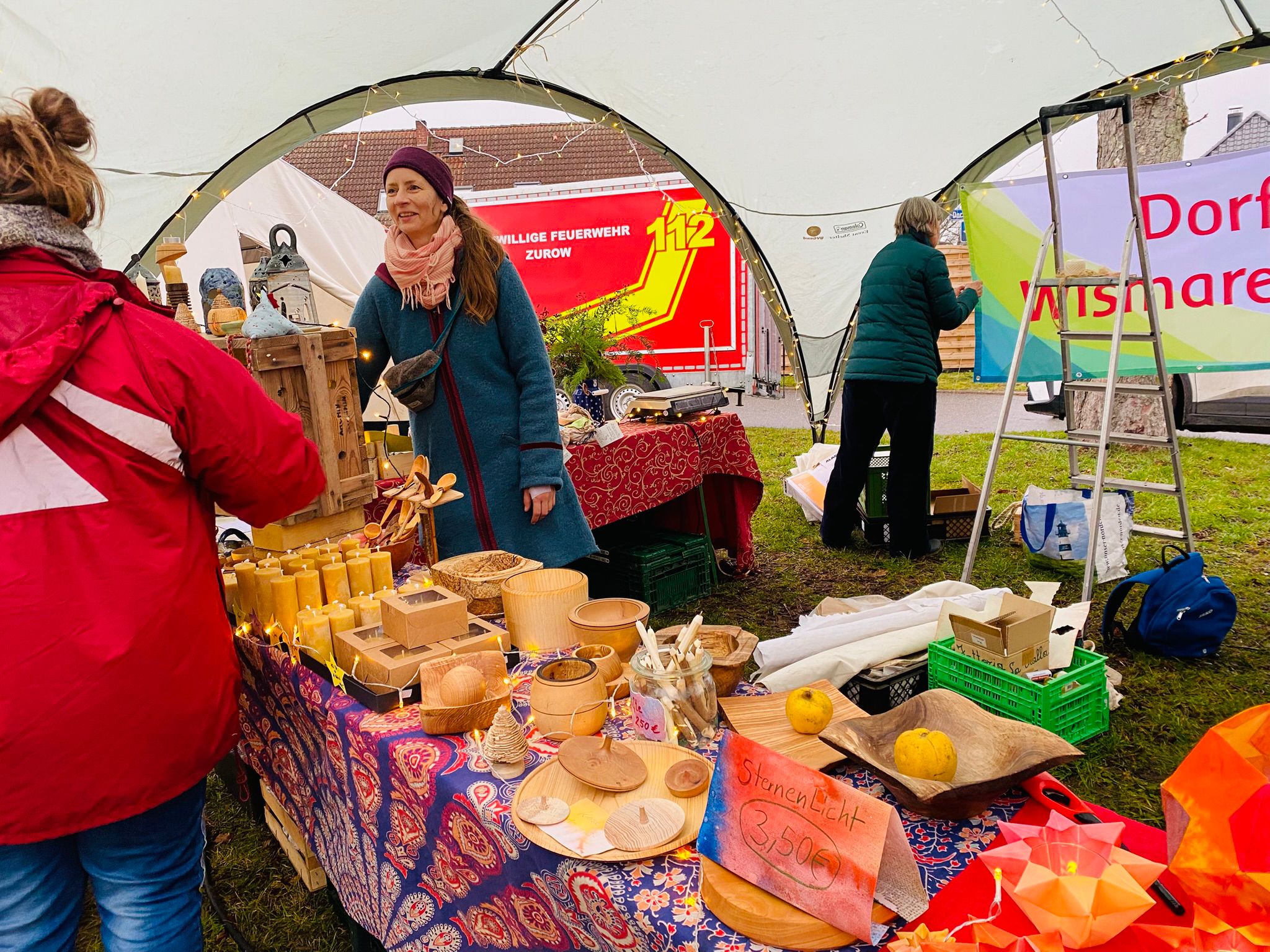Lichterketten, liebevoll dekorierte Stände und weihnachtliche Klänge sorgten für eine ganz besondere Atmosphäre. Ob handgemachte Geschenke, kulinarische Köstlichkeiten oder ein heißer Punsch zum Aufwärmen in unserer handgetöpferten »Adventszauber Zurow«-Tasse – für Groß und Klein war etwas dabei. Besonders die Begegnungen, Gespräche und das gemeinsame Einstimmen auf die Weihnachtszeit machten den Adventszauber in Zurow so einzigartig.