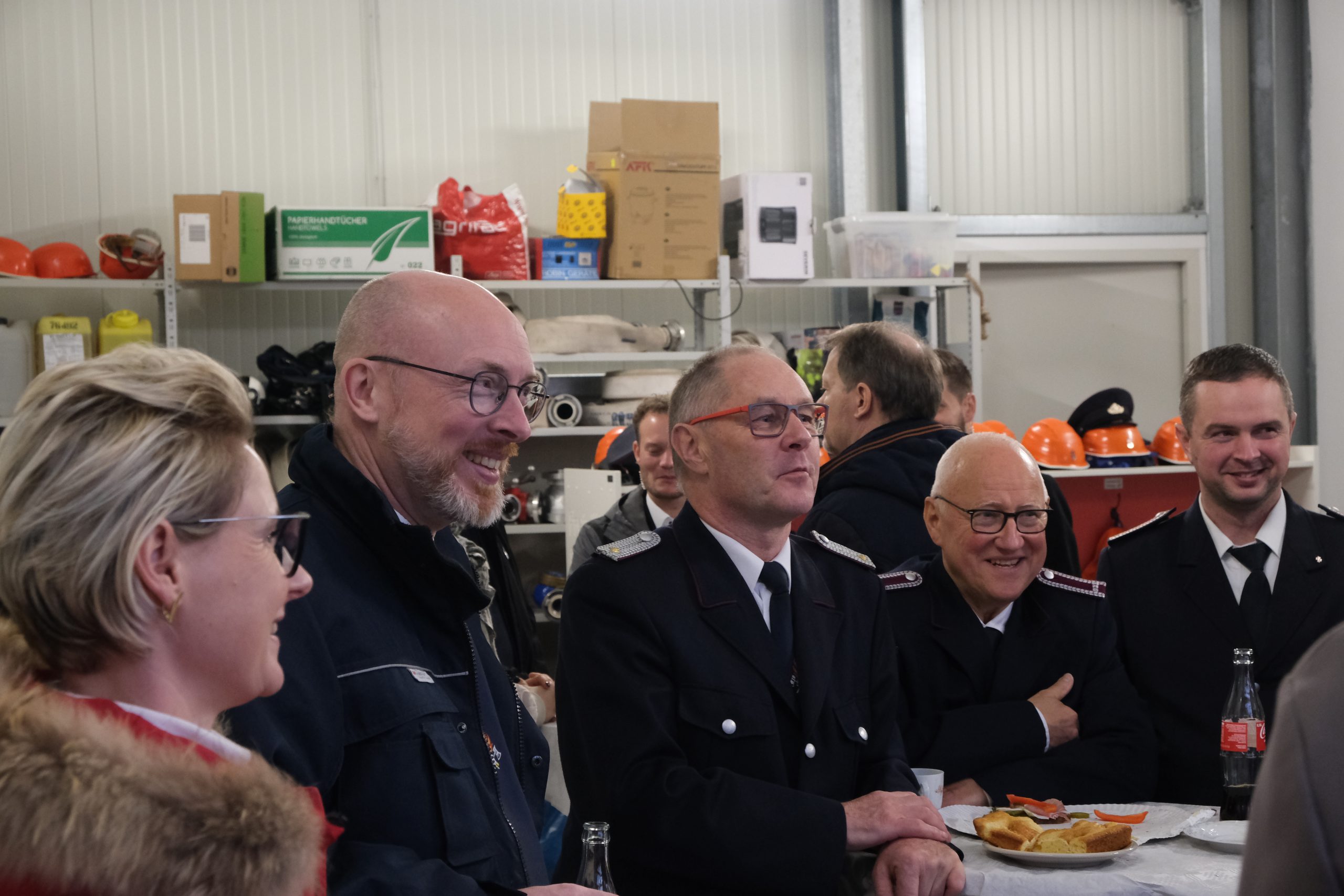 Trotz prall gefülltem Terminkalender ließ Minister Pegel es sich nicht nehmen, nicht nur den Zuwendungsbescheid persönlich zu überbringen, sondern auch über weitere anstehende Projekte zur Förderung Freiwilliger Feuerwehren zu informieren. Eine sehr angeregte Stunde lang erörterte er mit den anwesenden Feuerwehrleuten die Herausforderungen, denen sich insbesondere die Kommunen im Land stellen müssen, und wie das Land sie dabei unterstützen kann.