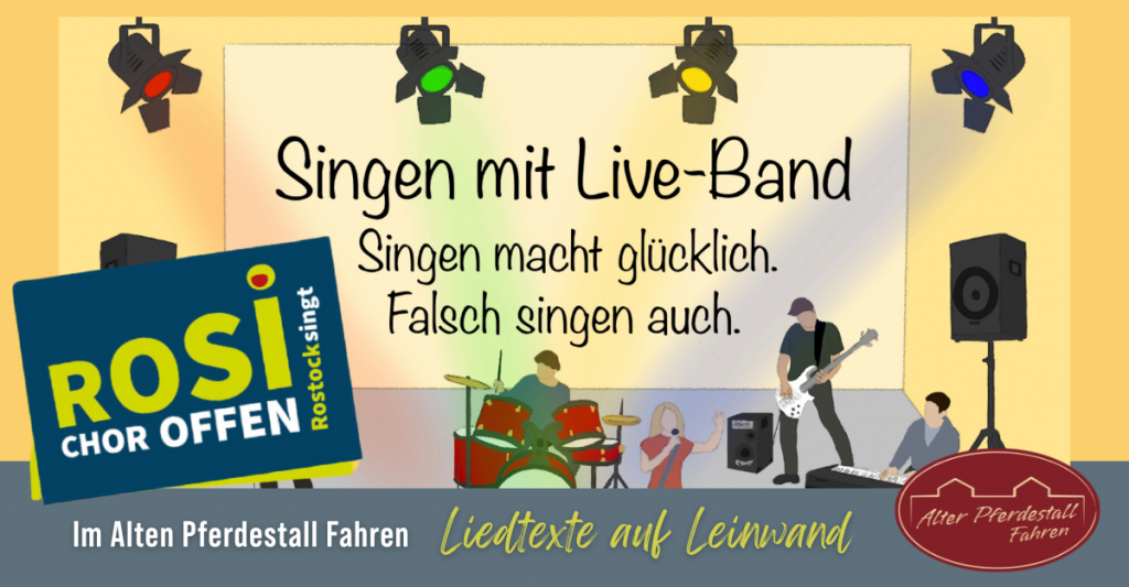 Am Freitag, dem 12. September 2025, wird Rosi – Rostock singt – um 19:30 Uhr im Alten Pferdestall Fahren zu erleben sein. Dann heißt es: Fahren singt. Das Motto: Songs for love and peace.